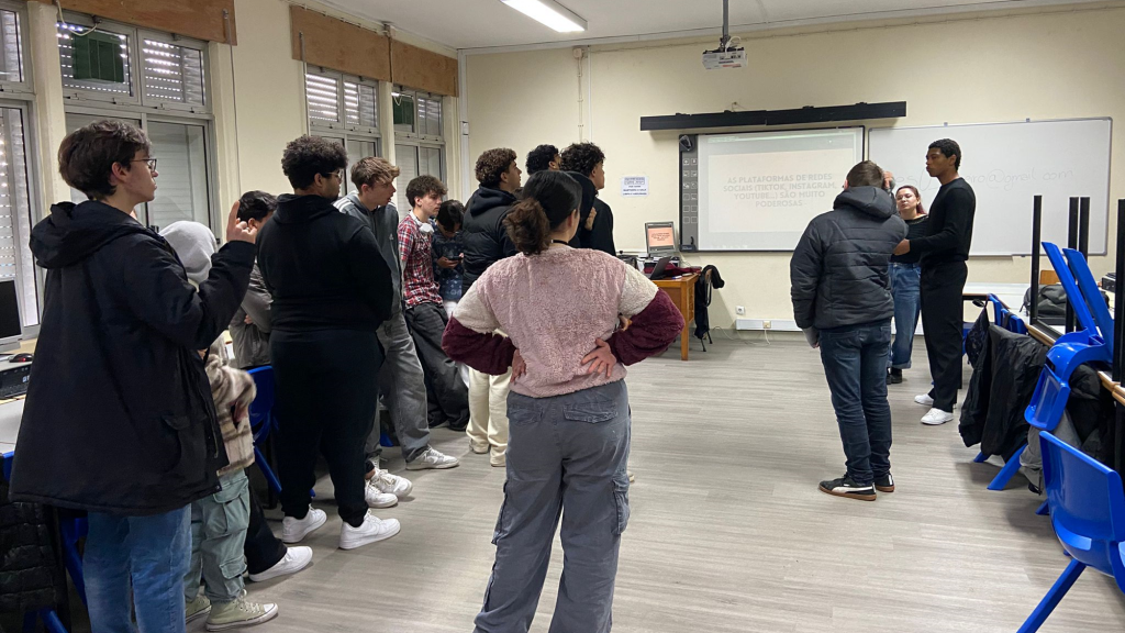 Divididos em grupos, os estudantes-investigadores do IPS aplicam os workshops junto a alunos do ensino secundário e escrevem um relatório sobre a experiência.
