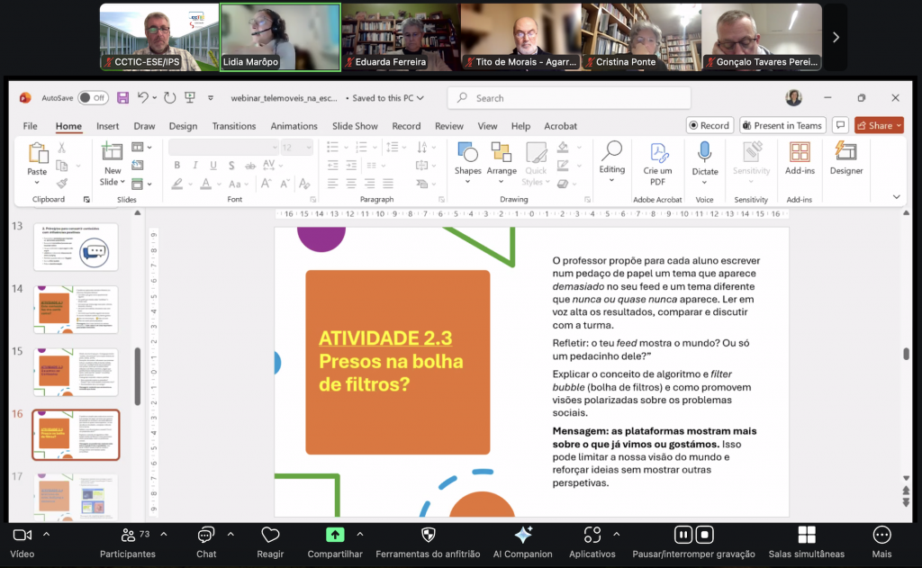 Durante cerca de 3 horas, as Doutoras Cristina Ponte, Lídia Marôpo e Eduarda Ferreira dinamizaram esta ACD, trazendo novos dados sobre esta temática e partilhando estratégias que podem ser utilizadas com os alunos, aos 61 professores de vários níveis de escolaridade presentes.